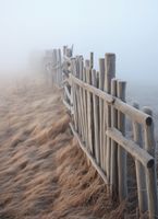 Plakat z serii pejzaże zatytułowany Mgła nad Wydmami. Prezentuje on eteryczny widok na drewniane ogrodzenie, które wiedzie przez poszarpane, suchą trawę wydm. Delikatna mgła otula scenę, nadając jej tajemniczość i spokój, a subtelne odcienie szarości i beżu tworzą uczucie miękkości i ciepła. Ten plakat idealnie oddaje atmosferę wyciszenia i rozmyślania, sprawiając, że jest doskonałym wyborem dla przestrzeni, które mają na celu uspokojenie i relaks, jak spa, pokoje medytacyjne, czy ciche kąciki w domach. To także piękny element dekoracyjny dla wnętrz inspirowanych naturą i spokojem przyrody.