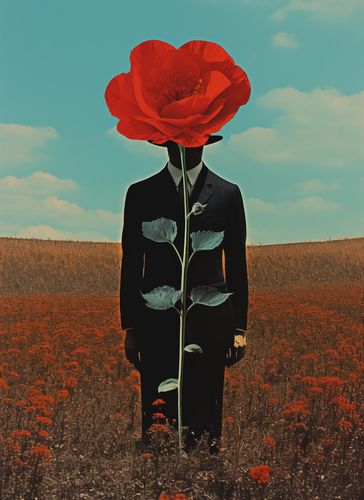 Plakat z serii abstrakcja zatytułowany Obserwator zza Maku. Ten plakat przedstawia surrealistyczny obraz człowieka z głową w formie rozkwitającego czerwonego maku, stojącego na polu pełnym kwiatów tej samej rośliny. Kompozycja gra na kontraście między ludzką postacią a bujnością natury, podkreślając połączenie człowieka z otaczającym go światem. Idealny dla przestrzeni szukających głębi artystycznej i wizualnej prowokacji, ten plakat będzie doskonałym dodatkiem do nowoczesnych salonów, galerii sztuki czy przestrzeni kreatywnych, gdzie może inspirować i wywoływać refleksję.