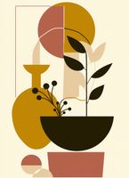 Plakat z serii minimalistyczne zatytułowany Wielkość Natury. Zaprezentowana jest tutaj elegancka kompozycja roślin w prostym naczyniu, zestawiona z geometrycznymi blokami kolorów w ciepłej, naturalnej palecie. Przywodzi ona na myśl harmonię i zorganizowaną prostotę, które można znaleźć w naturze, jak również w ludzkich tworach. Elementy w kształcie koła i półkola nadają kompozycji spokoju i równowagi, a linie i bloki kolorów tworzą poczucie głębi i struktury. Ten plakat będzie idealny do wnętrz, gdzie ceni się porządek i minimalistyczne podejście do dekoracji, wnosząc jednocześnie elementy natury i spokoju. Idealny do umieszczenia w przestrzeniach takich jak nowoczesne salony, eleganckie gabinety, lub jako spokojne tło w przestrzeniach biurowych.