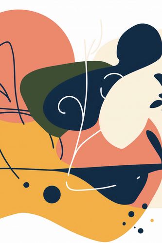 Plakat z serii minimalistyczne zatytułowany Dynamika Wizji. Grafika prezentuje żywą kompozycję abstrakcyjnych kształtów i linii, które tworzą energiczny, ale harmonijny obraz. Kolorystyka oscyluje wokół ciepłych tonów pomarańczu, żółci i bieli, z akcentami głębokiej zieleni, co nadaje pracy witalność i świeżość. Idealnie sprawdzi się jako ożywczy element w przestrzeniach minimalistycznych, takich jak nowoczesne biura, kreatywne studia, czy też domowe atelier. Może stanowić też centralny punkt w pomieszczeniach o stonowanej kolorystyce, przynosząc energię i ciepło do wnętrza. Wprowadzi dynamizm do każdej przestrzeni, zachowując przy tym poczucie elegancji i współczesnego designu.