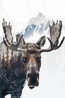 Plakat z serii natura zatytułowany Łoś Duch Lasu to majestatyczne przedstawienie łosia, którego potężne poroże przeobraża się w górski krajobraz. Na pierwszym planie widzimy głęboki, przenikliwy wzrok łosia, skupionego na widzu, z pięknymi, szczegółowo odwzorowanymi detalami sierści. Jego rozłożyste poroże płynnie przeistacza się w ośnieżone szczyty, co symbolizuje jego władzę i jedność z dziką przyrodą. Jasne, lekko zamglone tło sugeruje poranne światło, dodając plakatowi poczucia tajemnicy i dzikiego piękna. Ten plakat doskonale sprawdzi się w przestrzeniach inspirowanych naturą, takich jak chaty górskie, domy myśliwskie, lub jako wyraz głębokiego szacunku dla dzikiej przyrody w salonach i przestrzeniach wspólnych miłośników natury.