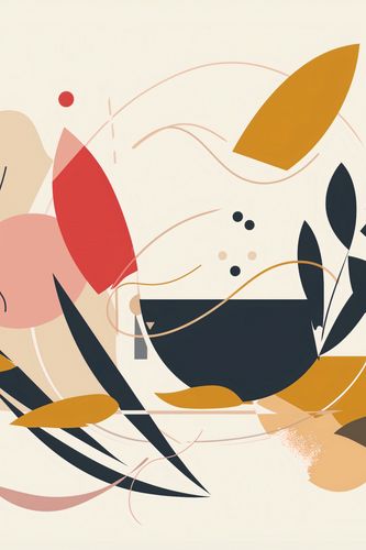 Plakat z serii minimalistyczne zatytułowany Porywista Flora. Grafika ta jest wizualnym poematem, łączącym abstrakcyjne formy z elementami botanicznymi. Ożywcze barwy, takie jak czerń, musztardowy żółty, głęboki pomarańcz i delikatny róż, mieszają się tworząc dynamiczną, ale harmonijną kompozycję. Wplecione w tło linie i kropki dodają ruchu, przywodząc na myśl taniec natury.Ten plakat doskonale udekoruje wnętrza w stylu mid-century modern, gdzie przytulne kolory i naturalne motywy są kluczowe. Jego energetyczna, ale spokojna paleta barw sprawi, że znajdzie swoje miejsce zarówno w domowych gabinetach, jak i w przestrzeniach publicznych, takich jak kawiarnie czy salony spa, wprowadzając do nich poczucie spokoju i równowagi.
