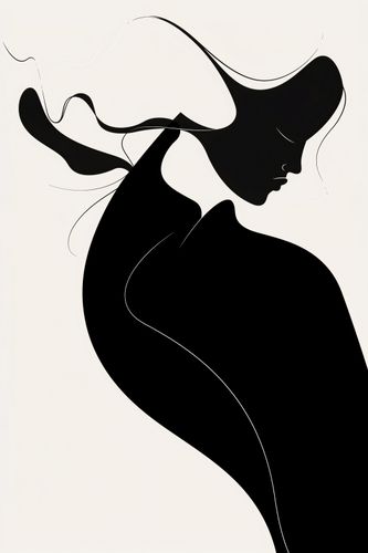 Plakat z serii minimalistyczne zatytułowany Redukcja do Zarysu.Na tym obrazie mamy przedstawiony minimalistyczny, ale wyrafinowany portret kobiety. Czarne i białe barwy stworzyły silny kontrast, a użycie wyłącznie tych dwóch odcieni nadaje dziełu ponadczasowy charakter. Postać jest zredukowana do zarysów, a jednocześnie zachowuje subtelność i gracje, szczególnie w delikatnym zarysie twarzy i falowaniu włosów. Ta praca może być interpretowana jako hołd dla klasycznej piękności i elegancji, oddanej w prostym, lecz potężnym wizualnie.