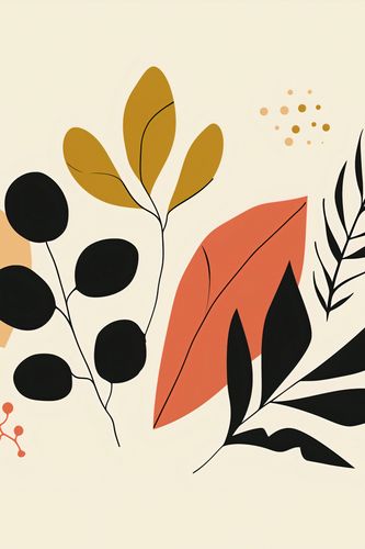 Plakat z serii minimalistyczne zatytułowany Różnorodność Stylu. Ten piękny obraz przedstawia różnorodność roślin w stylizowanej formie, z łagodnymi krzywiznami i eleganckimi liniami na spokojnym tle. Kolorystyka jest ciepła i naturalna, z dominującymi odcieniami ochry, czerwieni i czerni, które razem tworzą kojącą i zrównoważoną paletę. Plakat doskonale wpasuje się w przestrzenie, które chcą wyrazić spokój i harmonię poprzez sztukę. Może ozdobić ściany domowego salonu, sypialni, kącika do czytania, czy też dodać akcentu naturalnego piękna do biurowego otoczenia.BIAŁY MARGINES