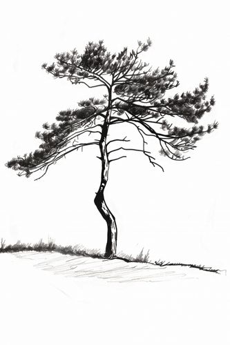 Plakat z serii minimalistyczne zatytułowany Samotna Sosna. Grafika ukazuje samotne, majestatyczne drzewo sosnowe, którego wygięte gałęzie opowiadają historię wielu lat stawiania czoła niewidzialnym siłom natury. Drzewo wyrasta smukłe, z charakterystycznym skrzywieniem, jakby w pozie tańca z wiatrem, a jego korona jest gęsta i dzika, malowana ekspresyjnymi pociągnięciami pędzla. Cień drzewa rysuje na ziemi delikatne wzory, dodając głębi kompozycji i zachęcając do refleksji nad przemijaniem i siłą życia.Ten plakat będzie pięknym dodatkiem do wnętrz, które pragną nawiązać do natury i wprowadzić element kontemplacyjny. Idealny do pomieszczeń, które cenią prostotę i głębię, takich jak medytacyjne kąciki, spokojne biblioteki lub minimalistyczne salony. Jego uniwersalna estetyka sprawia, że pasuje zarówno do nowoczesnych, jak i bardziej tradycyjnych przestrzeni.
