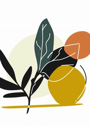 Plakat z serii minimalistyczne zatytułowany Elegancka Flora. Przedstawia on abstrakcyjną kompozycję roślinnych form na tle geometrycznych kształtów, tworząc przestrzeń pełną lekkości i harmonii. Kolorystyka oscyluje wokół spokojnych tonów żółci, czerwieni i głębokiej czerni, które razem wyrażają równowagę i nowoczesną estetykę. Plakat ten będzie doskonałym uzupełnieniem dla nowoczesnych wnętrz domowych, biurowych lub komercyjnych, które chcą wprowadzić elementy natury w stylizowanej, artystycznej formie. Idealnie nadaje się do przestronnych salonów, gabinetów lub jako wyrafinowany akcent w minimalistycznych, dobrze oświetlonych pomieszczeniach.