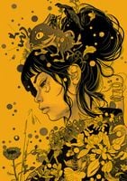 Plakat z serii motywy wschodnie zatytułowany Jedność prezentuje profil portretu młodej kobiety, którego kontury i przestrzeń wokół są wypełnione bogatym, złożonym motywem fauny i flory. Czarno-złota kolorystyka na tle w odcieniach musztardowego żółtego tworzy głęboki kontrast, który przyciąga wzrok i zmusza do refleksji. Włosy kobiety przechodzą w gęstą dżunglę roślin i zwierząt, symbolizując jedność z przyrodą. Wizualnie wyraziste i symbolicznie nasycone, dzieło artystyczne wydaje się idealne do wystroju nowoczesnych przestrzeni mieszkalnych lub miejsc publicznych, które chcą podkreślić związek z naturą i sztuką. Może być również doskonałym dodatkiem do galerii lub przestrzeni artystycznych, które cenią sobie oryginalność i głębię wizualną.