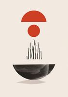 Plakat z serii boho zatytułowany Półokrągła Forma.Na tej grafike zmysłowe, geometryczne kształty tworzą obraz, który równie dobrze może być interpretacją wschodu słońca, jak i abstrakcyjnym przedstawieniem równowagi w przyrodzie. Półokrągła, czerwona forma nad czarną, pionową linią może sugerować słońce wschodzące nad cichym jeziorem, a czerwony krąg pośrodku może być metaforą istoty życia. Duża, ciemna forma na dole to ziemia lub możliwe odbicie, a całość kreuje uczucie pełni i harmonii.Plakat wprowadzi do wnętrza poczucie spokoju i wyważenia. Jest idealny dla tych, którzy chcą dodać do swojej przestrzeni element medytacyjny, pobudzający do refleksji. Doskonale pasuje do minimalistycznych salonów, biur, a także jako element zen w sypialniach, wprowadzając atmosferę oczyszczenia i wewnętrznej równowagi.