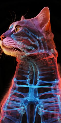 Plakat z serii pop art zatytułowany Anatomia Kota. Ta fascynująca grafika łączy w sobie sztukę i naukę, przedstawiając obraz kota z prześwitującym, kolorowym szkieletem. Praca eksploruje piękno ukryte w anatomii kota, podkreślając zarówno delikatność jak i złożoność jego budowy wewnętrznej. Dynamiczne, neonowe kolory nadają obrazowi nowoczesny, prawie kosmiczny wymiar. Plakat ten jest idealny dla weterynarzy, miłośników kotów, jak również stanowi wyjątkową dekorację w przestrzeniach edukacyjnych lub jako niezwykłe dzieło sztuki w domach i biurach.