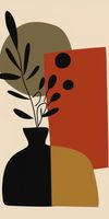 Plakat z serii minimalistyczne zatytułowany Dynamika Kompozycji. Ta grafika to esencja minimalistycznego piękna. Geometryczne formy wplecione w organiczny motyw roślinny tworzą spokojną, ale zarazem dynamiczną kompozycję. Proste linie i zrównoważone zestawienie kolorów – głębokiej czerni, ciepłego terrakoty, stonowanej zieleni i złota – nadają temu dziełu subtelny, ale wyrafinowany charakter. Dzieło idealnie wpisze się w nowoczesne, minimalistyczne lub śródziemnomorskie wnętrza, dostarczając delikatnego akcentu natury i abstrakcji.