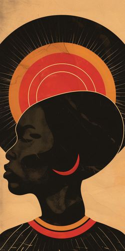 Plakat z serii abstrakcja zatytułowany Gorące Promienie to urzekający portret profilu kobiety, który wyraża siłę i spokojną godność. Jej sylwetka jest wyraźna i zdecydowana, z podkreślonymi, mocnymi liniami, a tło za jej głową tworzy aureolę w ciepłych odcieniach, od ciemnego poprzez jaskrawe odcienie pomarańczu do złota, co może symbolizować wschód lub zachód słońca. Te koncentryczne kręgi przypominają również halo, które często widnieje na obrazach świętych lub ikonach, nadając postaci niemal boski wymiar. Czarny kolor sylwetki w połączeniu z bogatymi, złotymi odcieniami tworzy mocny kontrast, który przyciąga wzrok i sugeruje tajemnicę oraz niezwykłą wewnętrzną siłę. Plakat ten jest elegancki i wyrazisty, doskonały do każdego wnętrza, w którym chce się podkreślić piękno, siłę i kulturowe bogactwo.