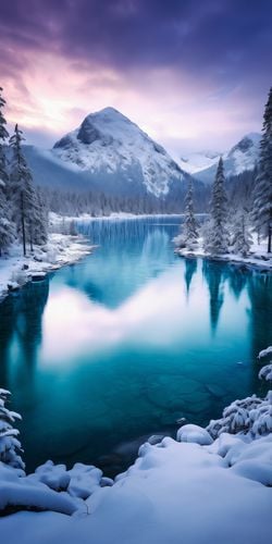 Plakat z serii pejzaże zatytułowany Górzyste Prześwity. Ten plakat ukazuje zachwycający zimowy krajobraz z krystalicznie czystym jeziorem, które odbija lśniące szczyty górskie i pastelowe barwy zachodzącego słońca. Obfite śnieżne pokrywy na drzewach i brzegach jeziora dodają scenie poczucia spokoju i izolacji. Idealny do wnętrz, które chcą wprowadzić elementy spokojnego piękna natury, ten plakat jest doskonałym dodatkiem do przestrzeni mieszkalnych, biurowych lub jako ukojenie w miejscach publicznych, wprowadzając atmosferę wyciszenia i odprężenia.