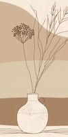 Plakat z serii minimalistyczne zatytułowany Kojący Wazon.Grafika z wprawą łączy subtelność natury z estetyką prostoty, przedstawiając bukiet suszonych roślin delikatnie umieszczonych w starannie wykonanym dzbanie. Dzieło gra na kontraście pomiędzy linearnym konturem a organicznymi kształtami, tworząc przy tym wizję pełną ciepła i spokoju. Tło w odcieniach beżu i brązu zapewnia kojący, zrównoważony nastrój, a całość kompozycji jest odzwierciedleniem natury uchwyconej w jej najprostszej formie. Plakat idealnie wpasuje się w wnętrza, gdzie dominuje spokój i naturalność, takie jak skandynawskie mieszkania, jasne gabinety czy przytulne zakątki do czytania. Jest to doskonały wybór dla tych, którzy pragną wprowadzić element natury do swojej przestrzeni bez jej dominacji, zachowując przy tym łagodny, neutralny ton.