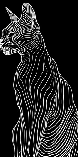 Plakat z serii abstrakcja zatytułowany Minimalny Kontur prezentuje minimalistyczny i stylowy wizerunek kota, wykonany w technice linii konturowych. Czyste, białe linie o zróżnicowanej grubości tworzą sylwetkę kota na jednolitym, czarnym tle, dając efekt elegancji i prostoty. Kompozycja skupia się na gracją i wyrafinowaną postawę kota, z wyraźnie zaznaczonymi uszami, oczami i kształtem ciała. Całość tworzy hipnotyzujący obraz, który jest zarazem współczesny i ponadczasowy, idealny dla miłośników minimalizmu, a także dla tych, którzy cenią sobie kreatywne podejście do tradycyjnego portretowania zwierząt. Plakat ten świetnie wkomponuje się w nowoczesne wnętrza, stanowiąc subtelny, ale wyrazisty akcent dekoracyjny.