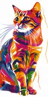 Plakat z serii abstrakcja zatytułowany Nasycony Kot prezentuje kota w stylu pop art, którego futro jest kolażem żywych i nasyconych kolorów, tworząc wizualnie hipnotyzujący efekt. Wzrok kota, z głębokimi i bystrymi oczami, wydaje się śledzić coś poza ramą obrazu, dodając tajemniczości i życia tej grafice. Ekspresyjne linie i kształty, które definiują postać, są odważne i dynamiczne, co podkreśla niezależny charakter zwierzęcia. Ta energetyczna i barwna ilustracja przyciąga wzrok i jest doskonałym dodatkiem do nowoczesnych przestrzeni, które chcą dodać odrobiny kreatywności i koloru, idealna do salonów, studiów artystycznych lub pokoi młodzieżowych.