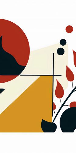 Plakat z serii minimalistyczne zatytułowany Ogień i Flora. Prezentuje on minimalistyczne przedstawienie płomienia, które łączy się z delikatnymi roślinnymi motywami. Wykorzystane kolory - głęboka czerwień, czarny i odcienie beżu oraz żółci - tworzą silny wizualny kontrast, dodając dziełu dramatyzmu. Plakat ten idealnie nadaje się do wnętrz o ciepłej kolorystyce, które chcą dodać wyrazistości swojej przestrzeni. Może być pięknym uzupełnieniem salonu, przestrzeni jadalnej czy holu, wniosąc do nich energię i życie. Jego uniwersalne motywy roślinne sprawią, że będzie on pasował do wielu różnych stylów dekoracji wnętrz, od nowoczesnych po bardziej tradycyjne.