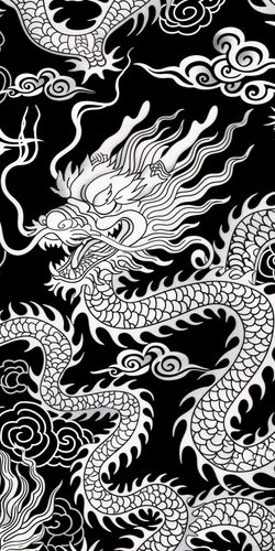 Plakat z serii motywy wschodnie zatytułowany Orient przedstawia dynamiczną i szczegółową ilustrację smoka w stylu orientalnym, wypełniającego większość kompozycji na czarnym tle. Smok jest przedstawiony w tradycyjnej chińskiej estetyce, z wydłużonym ciałem pokrytym łuskami, długim, zakręconym wiatrem, ostrymi pazurami i wyrazistymi rysami twarzy. Wykorzystanie kontrastowych bieli i czerni wzmacnia graficzny charakter ilustracji, podkreślając wyrafinowane detale i płynność ruchów smoka. Jego ciało płynnie przenika przez chmury i wiry dymu, co dodaje kompozycji wrażenia głębi i ruchu. Ta praca może symbolizować moc, mądrość i ducha przemiany, które są często kojarzone ze smokami w kulturze wschodniej. Idealnie nadawałby się jako element dekoracyjny w przestrzeniach, które chcą nawiązać do azjatyckiej kultury lub dodać silny, energiczny akcent do swojego otoczenia.