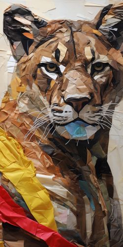 Plakat z serii wnętrza zatytułowany Papierowy Tygrys. Ta oryginalna i kreatywna ilustracja przedstawia portret tygrysa wykonany techniką kolażu z kolorowych kawałków papieru. Wykorzystanie różnych odcieni i tekstur papieru nadaje dziełu głębi i dynamiki, a jednocześnie zachowuje realistyczny obraz dzikiego zwierzęcia. Plakat ten jest wyjątkowym dziełem sztuki, które przyciąga wzrok i inspiruje, idealny dla miłośników natury i oryginalnego designu, świetnie sprawdzi się w nowoczesnych salonach, gabinetach lub jako wyrazisty akcent w przestrzeniach publicznych takich jak galerie sztuki czy kawiarnie.
