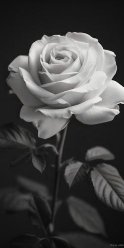 Plakat z serii wnętrza zatytułowany Płatki Róż. Plakat przedstawia ponadczasowy, monochromatyczny obraz róży. Róża, z delikatnymi i szczegółowymi płatkami, jest wyeksponowana na ciemnym tle, co wyostrza jej obrys i podkreśla subtelne niuanse jej formy. Gra światła i cienia nadaje głębi i trójwymiarowości, a ułożenie płatków w pełnym rozkwicie symbolizuje piękno i doskonałość. Liście i łodyga są skromne, ale wyraźne, dodając naturalności całej kompozycji. Plakat oddaje esencję delikatności i elegancji róży, co sprawia, że jest idealny dla każdego, kto szuka elementu dekoracyjnego o subtelnym pięknie i spokojnej, relaksującej estetyce.