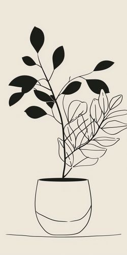 Plakat z serii minimalistyczne zatytułowany Prostota Doniczki.Plakat przedstawia elegancką kompozycję roślin w doniczce, narysowanych za pomocą czystych, prostych linii. Kontrastowe czarne liście na górze są zrównoważone przez delikatny zarys krzewu poniżej. Prosta doniczka o zaokrąglonych kształtach dodaje kompozycji nowoczesnego charakteru.Dzieło to wnoszące do wnętrza powiew świeżości i natury, jest idealnym wyborem dla przestrzeni, które cenią sobie spokój i czyste linie. Doskonale nadaje się do minimalizmu, skandynawskiego stylu mieszkania, biur, czy pokoi o jasnym wystroju, gdzie sztuka ma za zadanie uspokajać i przynosić harmonię.