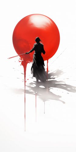 Plakat z serii motywy wschodnie zatytułowany Samotny Samuraj przedstawia postać w tradycyjnym japońskim stroju, samuraja, w dynamicznej pozie z mieczem, z potężnym, czerwonym słońcem w tle. Design wykorzystuje silne kontrasty kolorystyczne - biel i czerń z akcentami czerwieni, aby stworzyć dramatyczną i potężną wizualizację. Przedstawienie samuraja w akcji z rozpryskami tuszu naokoło podkreśla ruch i energię, a jednocześnie oddaje hołd tradycyjnym technikom japońskiego malarstwa atramentem. Ten plakat to doskonały wybór dla miłośników japońskiej kultury i sztuk walki, idealny do wnętrz nowoczesnych jak i tych o bardziej klasycznym charakterze.