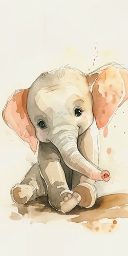 Plakat z serii wnętrza zatytułowany Siwy Słonik to czarująca akwarela przedstawiająca małego, siwego słonia z dużymi, wyrazistymi oczami i rozłożystymi uszami w odcieniach różu. Delikatność i ciepło ilustracji wydobywają ujmującą niewinność młodego słonia. Rozpryski akwareli wokół postaci dodają dynamiki i lekkości, sugerując radosną zabawę i beztroskę. Ten plakat wprowadza atmosferę spokoju i radości, idealnie nadają się do ozdobienia przestrzeni dziecięcej, takiej jak pokoje maluchów, przedszkola, sale zabaw czy kąciki czytelnicze w bibliotekach. Jego urokliwy obraz może inspirować młode umysły do marzeń i pozytywnego myślenia.