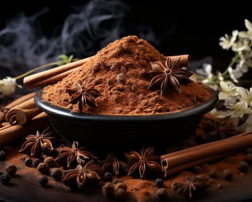 Plakat z serii święta zatytułowany Esencja Aromatu. Mocny akcent na kompozycję przypraw z cynamonem, anyżem i ziarnami pieprzu rozsypanych wokół miski pełnej mielonego cynamonu, tworzący wzór przypominający sztukę natury, wyróżnia się zarówno prostotą, jak i głębią. Delikatny dym unoszący się nad przyprawami dodaje atmosfery ciepła i domowego ogniska. Ten obraz idealnie komponuje się z kuchniami o bogatym, ziemskim wystroju, jak również z eleganckimi restauracjami oferującymi etniczną kuchnię, gdzie podkreśli uczucie przytulności i tradycji.