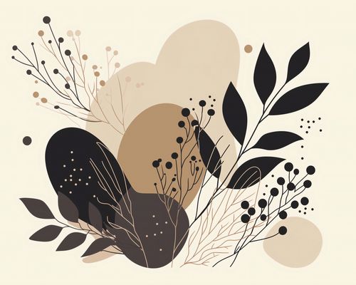 Plakat z serii minimalistyczne zatytułowany HarmonijkaPrzyrody. Ta grafika to estetyczna kompozycja abstrakcyjnych, organicznych kształtów i delikatnych motywów florystycznych w tonacji ziemi. Wykorzystanie różnych odcieni brązu, beżu oraz głębokiej czerni tworzy spokojną, ale i wyrafinowaną paletę barw. Kontrastowe, ciemne elementy florystyczne są pięknie zrównoważone przez jasne tło, nadając całości uczucie lekkości i elegancji.Jest to idealny wybór dla osób, które szukają subtelnego, ale wyrazistego elementu dekoracyjnego do swojego domu lub biura.