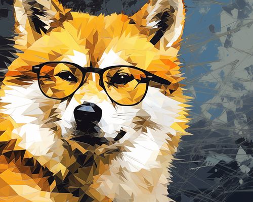 Plakat z serii pop art zatytułowany Intelektualny Psiak - wyrafinowany portret psa wykonany w stylu low poly, który jest artystycznym połączeniem nowoczesnej grafiki i dzikiego ducha natury. Pomarańczowe, białe i czarne wielokąty tworzą wizerunek psa z charakterystycznymi okularami, nadając mu wygląd pełen inteligencji i wyrafinowania. Mroczne tło z abstrakcyjnymi elementami dodaje głębi i kontrastu, wyróżniając głównego bohatera. Ten plakat to idealne odzwierciedlenie połączenia natury z kulturą miejską, świetnie nadające się do dekoracji nowoczesnych przestrzeni takich jak kawiarnie, księgarnie, czy domowe biura osób ceniących unikalny design i przyrodnicze motywy.