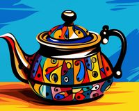 Plakat z serii pop art zatytułowany Może Herbatki?. Ta żywa i kolorowa ilustracja przedstawia czajnik w stylu pop-art, z wzorami przypominającymi prace modernistycznych malarzy. Barwna, geometryczna dekoracja czajnika, zestawiona z dynamicznym, niebieskim tłem, sprawia, że jest on nie tylko przedmiotem użytkowym, ale także dziełem sztuki. Kontrastujące kolory i wyraźne linie tworzą poczucie ruchu i energii. Plakat ten doda życia i charakteru każdej kuchni czy jadalni, inspirowanej sztuką i designem, będąc doskonałym prezentem dla miłośników wyjątkowych akcesoriów kuchennych.
