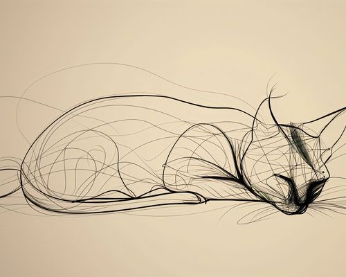 Plakat z serii wnętrza zatytułowany Odpoczynek. Prezentuje on minimalistyczne, lecz wyrafinowane przedstawienie kota odpoczywającego, wykonane za pomocą złożonych, płynnych linii. Kontury kształtujące zwierzęce ciało na złotawym tle emanują spokojem i harmonią, przyciągając wzrok swoją subtelną grą cieni i światła. Ta stylizowana ilustracja o prostocie z pogranicza abstrakcji i realizmu idealnie nadaje się do nowoczesnych przestrzeni życiowych, które cenią sobie elegancję i spokój, takich jak medytacyjne zakątki domu, ciche gabinety lub designerskie studio jogi. Plakat jest zaproszeniem do zwolnienia tempa i cieszenia się chwilą relaksu w naszym zagonionym świecie.