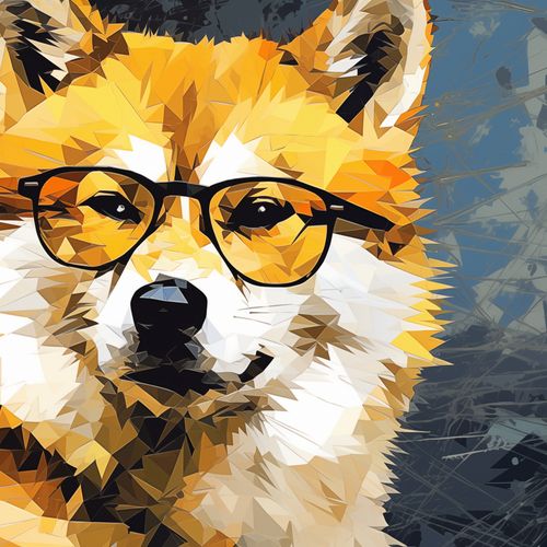 Plakat z serii pop art zatytułowany Intelektualny Psiak - wyrafinowany portret psa wykonany w stylu low poly, który jest artystycznym połączeniem nowoczesnej grafiki i dzikiego ducha natury. Pomarańczowe, białe i czarne wielokąty tworzą wizerunek psa z charakterystycznymi okularami, nadając mu wygląd pełen inteligencji i wyrafinowania. Mroczne tło z abstrakcyjnymi elementami dodaje głębi i kontrastu, wyróżniając głównego bohatera. Ten plakat to idealne odzwierciedlenie połączenia natury z kulturą miejską, świetnie nadające się do dekoracji nowoczesnych przestrzeni takich jak kawiarnie, księgarnie, czy domowe biura osób ceniących unikalny design i przyrodnicze motywy.