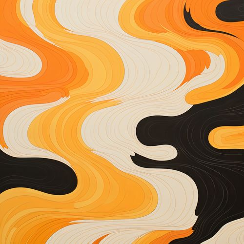 Plakat z serii abstrakcja zatytułowany Słońce i Cień. Falujące linie w odcieniach złota, białego i głębokiej czerni zataczają taniec, przypominający to ciepłe promienie słoneczne, to mroczne zakamarki nocy. Dynamiczne zakręty i zwroty tworzą rytm, który prowadzi oko przez całą kompozycję, wprowadzając uczucie ruchu i energii. Ciepłe odcienie pomarańczy kontrastują z chłodnymi, ciemnymi zakątkami, dodając obrazowi głębi i wielowymiarowości. Doskonale nadaje się do nowoczesnych biur, artystycznych galerii oraz salonów o minimalistycznym wnętrzu, pragnących dodać odrobinę koloru i życia do swojej przestrzeni.