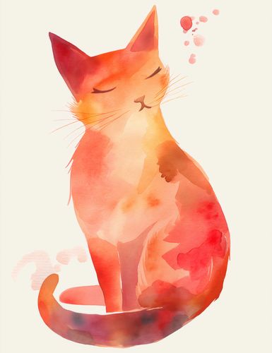 Plakat z serii wnętrza zatytułowany Akwarelowy Kot przedstawia akwarelową ilustrację spokojnego, zamyślonego kota. Kot zamyka oczy w zadowoleniu, a jego sylwetka płynnie przechodzi w bogatą paletę ciepłych odcieni czerwieni i pomarańczu, co nadaje dziełu wrażenie spokoju i ciepła. Delikatne plamy i rozmycia barw typowe dla akwareli tworzą wrażenie lekkości i przestrzeni, a jednocześnie podkreślają łagodność i spokojny nastrój plakatu. Jest to doskonały wybór dla tych, którzy pragną wprowadzić do swojego domu element relaksu i spokoju. Plakat ten idealnie wpasuje się w przestrzeń taką jak przytulna kawiarnia, zakątek do czytania w domowej biblioteczce lub pokój dziecinny, gdzie może inspirować do spokojnego snu i odpoczynku.