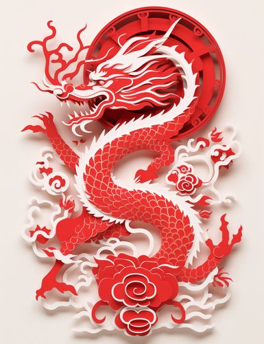 Plakat z serii motywy wschodnie zatytułowany Czerwony Smok. Ta intrygująca grafika przedstawia czerwonego smoka w stylu papierowej wycinanki, który wydaje się wyłaniać z tła z potężną siłą i gracja. Smok, symbolizujący szczęście, siłę i dobrobyt w kulturach azjatyckich, został przedstawiony w pełnym ruchu, z płomieniami i chmurami otaczającymi jego ciało. Kolor czerwony dominuje w dziele, co w kulturze chińskiej jest zwiastunem szczęścia i pomyślności. Ten plakat doskonale nada się jako wyraziste dzieło sztuki w każdym wnętrzu, szczególnie polecany jako dekoracja na święto Chińskiego Nowego Roku, w przestrzeniach publicznych takich jak restauracje czy hotele, a także w domach ceniących azjatycką estetykę i symbolikę.
