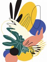 Plakat z serii minimalistyczne zatytułowany Dotyk Tropików. Ten energetyczny i kolorowy plakat przedstawia abstrakcyjną, niemal surrealistyczną wizję tropikalnej roślinności. Wielobarwne kształty łączą się z naturalnymi elementami tworząc efektowną kompozycję, która oddaje bujność i różnorodność tropików. Paleta barw, od głębokiego granatu, poprzez jaskrawy żółty, aż po delikatne pastele, wnosi do wnętrza świeżość i egzotykę.Ten plakat jest idealnym wyborem dla wnętrz, które pragną wnieść żywiołowość i odrobinę egzotyki do codziennej przestrzeni. Doskonale uzupełni jasne i przestronne salony, a także stanie się inspirującym akcentem w kreatywnych pracowniach lub kawiarniach. Może również dodać charakteru nowoczesnym, minimalistycznym biurom, wprowadzając żywe barwy i organiczne motywy.