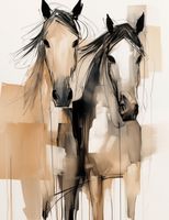 Plakat z serii wnętrza zatytułowany Dusze na Wolności. Ten artystyczny obraz przedstawia dwie abstrakcyjne sylwetki koni, uchwycone w dynamicznych, niemal eterycznych pociągnięciach pędzla. Neutralna paleta barw z dominującymi odcieniami beżu i czerni, podkreślona jest przez akcenty i plamy, co nadaje dziełu głębi i tekstury. Artystyczne, swobodne linie i plamy tuszu tworzą wrażenie ruchu i wolności, wywołując emocjonalne rezonanse z widzem. Plakat jest idealnym wyborem dla miłośników koni, sztuki współczesnej i abstrakcyjnego ekspresjonizmu, będąc nie tylko dekoracją, ale także wyrafinowanym elementem w przestrzeniach takich jak salony, biura, czy galerie sztuki.