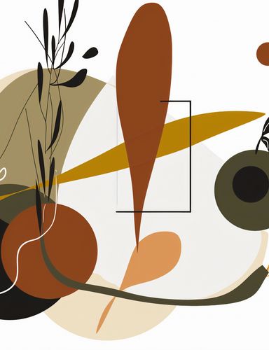 Plakat z serii minimalistyczne zatytułowany Ekspresja w Impresji. Ten plakat przedstawia złożoną kompozycję abstrakcyjnych kształtów, linii i form botanicznych, tworząc spójną całość w paletcie beżu, brązu, czerni i ochry, z akcentami w odcieniach ciepłego żółtego. Gra kształtów i linii jest równocześnie dynamiczna i harmonijna, nadając plakatowi nowoczesny i artystyczny wygląd.Grafika będzie świetnie wyglądała w nowoczesnych i minimalistycznych przestrzeniach, które korzystają z neutralnych barw i akcentują formę nad kolorem. Doskonale nadaje się do biur o kreatywnym charakterze, salonów czy przedpokoi, które pragną wnieść sztukę współczesną do swojego wnętrza.