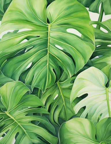 Plakat z serii natura zatytułowany Tajemnice Liści. Świeże, soczyste barwy liści monstery ożywione są przez ich charakterystyczne, wydrążone kształty i wyraziste linie. Złamane światło przenika przez wcięcia liści, podkreślając ich strukturalne piękno i głębię. Wspaniałe przejścia odcieni zieleni dodają uczucie głębi i dynamiki. Ten pełen życia i bogaty w detale obraz świetnie sprawdzi się w nowoczesnych salonach, oranżeriach lub biurach z ekologicznym designem, gdzie chce się wprowadzić element tropikalnej natury.