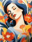 Plakat z serii abstrakcja zatytułowany Urok Wewnętrzny. Zjawiskowy portret kobiety otoczonej przez żywe, kolorowe kwiaty, które podkreślają jej delikatność i gracje. Błyszczące, czerwone usta i spokojne, zamknięte oczy dodają głębokości i uczucia. Kompozycja ta jest pełna pasji, życia i kobiecej energii. Świetnie sprawdzi się w salonach spa, gabinetach kosmetycznych oraz w eleganckich sypialniach.