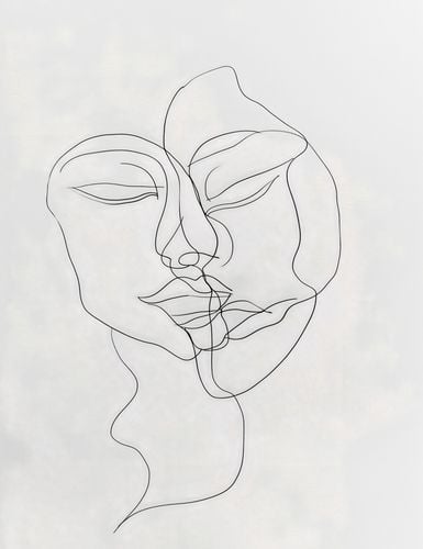 Plakat z serii minimalistyczne zatytułowany Zwiewność Bytu to minimalistyczne dzieło sztuki, które w subtelny sposób przedstawia dwa profile ludzkich twarzy splecione w delikatnym pocałunku. Wyrafinowane, płynne linie tworzą elegancką i harmonijną kompozycję, a przezroczystość i lekkość konturów sprawiają, że obraz wydaje się być niemal eteryczny. Tło plakatu, z jego delikatnymi odcieniami i subtelnie zaznaczoną teksturą, dodaje głębi i spokoju. Ten plakat będzie pięknym i spokojnym dodatkiem do każdego nowoczesnego wnętrza, nadając mu artystycznej duszy i nastroju intymności.