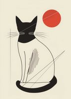 Plakat z serii minimalistyczne zatytułowany Czerwony Krąg. Plakat prezentuje stylizowaną sylwetkę czarnego kota, który siedzi tyłem, skupiony na czerwonym kręgu, który może symbolizować zachodzące słońce. Prostota formy i kontrastowe barwy tworzą spokojną, lecz sugestywną kompozycję. Cień kota i jego wyraziste wąsy dodają ilustracji charakteru i głębi. To dzieło sztuki jest idealne dla tych, którzy cenią sobie zarówno minimalizm, jak i symboliczne znaczenie w swoim otoczeniu. Plakat będzie pięknym akcentem w każdej przestrzeni, wnosząc odrobinę tajemnicy i spokoju. Idealnie pasuje do pomieszczeń o współczesnym wystroju, takich jak nowoczesne salony, sypialnie lub domowe biura, a także do miejsc, które są sanktuarium relaksu i kontemplacji.