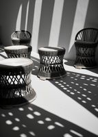 Plakat z serii wnętrza zatytułowany Gra Świateł to stylowa, monochromatyczna fotografia, która oddaje estetykę współczesnego designu. Na fotografii widzimy zestaw eleganckich, plecionych stołków z rattanu ustawionych na tle geometrycznych cieni. Ostre linie cieni przełamują okrągłe kształty mebli, tworząc fascynującą kompozycję pełną kontrastów. Białe siedziska stołków pięknie kontrastują z ciemniejszymi elementami, a gra światła i cienia nadaje scenie trójwymiarowość i teksturę. Plakat ten będzie doskonały dla miłośników minimalistycznych wnętrz, a także dla osób poszukujących elementu dekoracyjnego, który wprowadzi do pomieszczenia nowoczesny i artystyczny akcent. Idealny do nowoczesnych przestrzeni mieszkalnych, biur, kawiarni lub galerii sztuki.