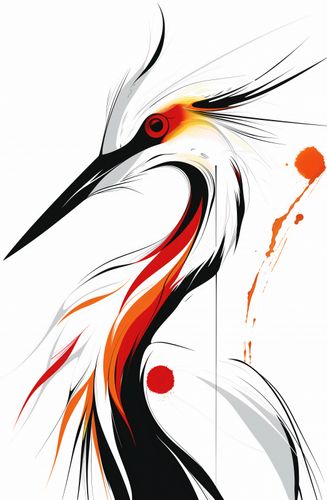 Plakat z serii motywy wschodnie zatytułowany Bocian to dynamiczna i ekspresyjna interpretacja bociana, wykonana w stylu nowoczesnej abstrakcji. Ptak przedstawiony jest za pomocą ostrych, płynnych linii i silnych kontrastów kolorystycznych, gdzie biel, czerń i intensywne odcienie czerwieni przenikają się, tworząc uczucie ruchu i energii. Ogień w oku bociana i płomienne akcenty na jego upierzeniu sugerują pasję i życiową siłę, a spontaniczne plamy i kropki dodają dziełu artystycznego zacięcia. Plakat emanuje siłą i wolnością, idealny do wnętrz, które chcą wyrazić dynamizm i siłę natury, doskonały dla przestrzeni pełnych energii jak nowoczesne biura, kreatywne pracownie, lub jako wyrazisty element dekoracyjny w domowym salonie.