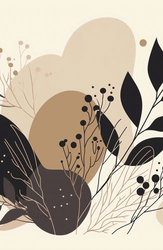 Plakat z serii minimalistyczne zatytułowany HarmonijkaPrzyrody. Ta grafika to estetyczna kompozycja abstrakcyjnych, organicznych kształtów i delikatnych motywów florystycznych w tonacji ziemi. Wykorzystanie różnych odcieni brązu, beżu oraz głębokiej czerni tworzy spokojną, ale i wyrafinowaną paletę barw. Kontrastowe, ciemne elementy florystyczne są pięknie zrównoważone przez jasne tło, nadając całości uczucie lekkości i elegancji.Jest to idealny wybór dla osób, które szukają subtelnego, ale wyrazistego elementu dekoracyjnego do swojego domu lub biura.