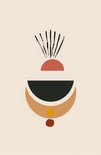 Plakat z serii boho zatytułowany Spójna Refleksja.Grafika ukazuje abstrakcyjną kompozycję geometrycznych kształtów w spójnej, ciepłej palecie barw, sugerującą delikatność i równowagę. Cechą charakterystyczną są wydłużone, smukłe linie wychodzące z półkola na górze, które mogą przypominać promienie słońca czy roślinne motywy. Ten plakat doskonale wpasuje się w nowoczesne i minimalistyczne przestrzenie, takie jak jadalnie, salony, a nawet kreatywne przestrzenie pracy, gdzie może stanowić spokojny punkt skupienia i inspirować do przemyśleń.