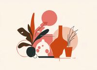 Plakat z serii minimalistyczne zatytułowany Ciepłe Gesty. Grafika składa się z eleganckiej kombinacji abstrakcyjnych form, stylizowanych wazonów i roślinnych motywów, w których dominują ciepłe odcienie czerwieni, różu oraz neutralne tony. Całość tworzy przyjemną dla oka i zrelaksowaną kompozycję, która łączy elementy sztuki nowoczesnej z naturalnymi akcentami. Ten plakat będzie pięknym dodatkiem do wnętrz o spokojnej, relaksującej atmosferze, jak również do przestrzeni, które cenią prostotę i elegancję w designie. Może znaleźć swoje miejsce w jasnych salonach, biurach, a nawet w recepcjach hotelowych, gdzie może dodać odrobinę ciepła i estetycznego spokoju.