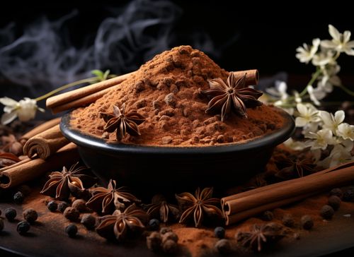 Plakat z serii święta zatytułowany Esencja Aromatu. Mocny akcent na kompozycję przypraw z cynamonem, anyżem i ziarnami pieprzu rozsypanych wokół miski pełnej mielonego cynamonu, tworzący wzór przypominający sztukę natury, wyróżnia się zarówno prostotą, jak i głębią. Delikatny dym unoszący się nad przyprawami dodaje atmosfery ciepła i domowego ogniska. Ten obraz idealnie komponuje się z kuchniami o bogatym, ziemskim wystroju, jak również z eleganckimi restauracjami oferującymi etniczną kuchnię, gdzie podkreśli uczucie przytulności i tradycji.