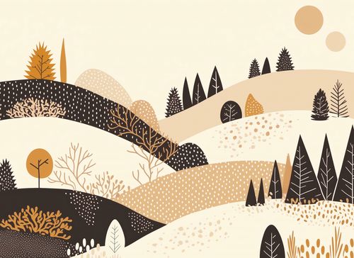 Plakat z serii minimalistyczne zatytułowany Jesień w Wzgórzach. Ten ciepły, zachęcający obraz przedstawia malowniczy, stylizowany krajobraz wzgórz i drzew w złocistych i beżowych barwach jesieni, z subtelnie wplecionymi akcentami czerni, dodający nostalgii każdemu wnętrzu. Plakat ten wprowadzi spokój i ciepło do każdego wnętrza. Świetnie nadaje się do ozdobienia przestrzeni, gdzie dominuje naturalne światło i ciepłe drewniane tonacje, takich jak salon, domowe biuro czy przytulna biblioteka.