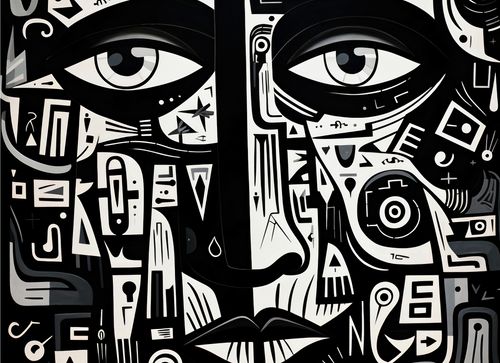 Plakat z serii abstrakcja zatytułowany Labirynt Myśli. Intrygujące oczy spoglądające z głębi obrazu są otoczone złożonymi wzorami i symbolami, które łączą się, tworząc enigmatyczny portret. Czarno-białe barwy kontrastują ze sobą, dodając dziełu intensywności i głębi. Złożoność wzorów symbolizuje skomplikowane myśli i emocje, które kryją się za ludzkim spojrzeniem. Świetnie sprawdzi się w nowoczesnych biurach, galeriach sztuki oraz w przestrzeniach przeznaczonych dla miłośników abstrakcyjnej ekspresji.